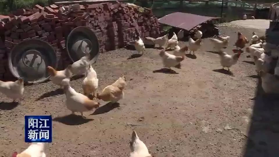 这位正在喂鸡的农妇叫黄群,是村里的贫困户。在扶贫干部的帮助下,今年她养了100只益生菌鸡。现在这批鸡长势良好。