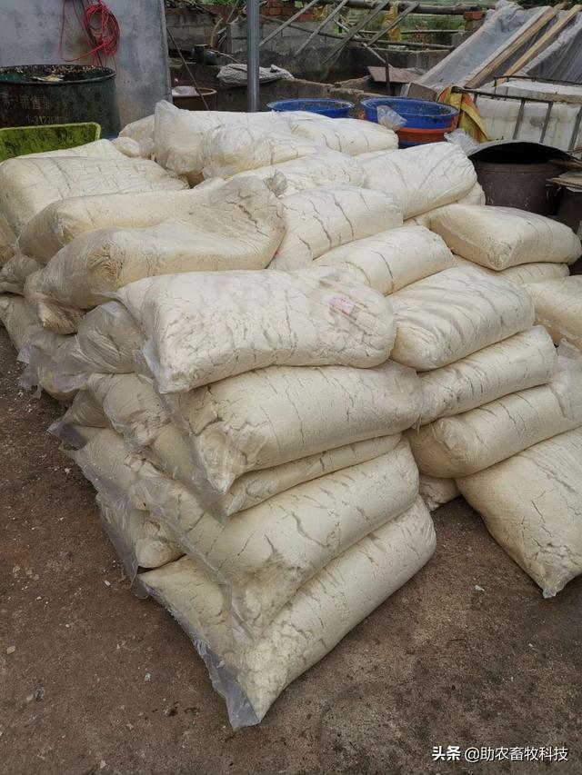 →→① 1800公斤湿豆渣+200公斤玉米粉+1包99多功能饲料发酵剂(500克,市场售价约25元),发酵后的蛋白质为28%左右,另外添加食盐1公斤。