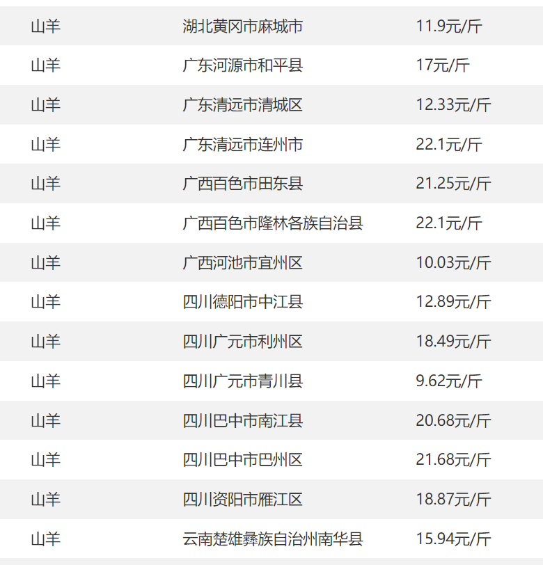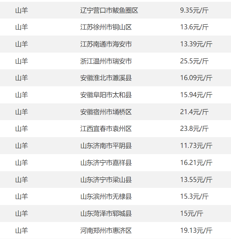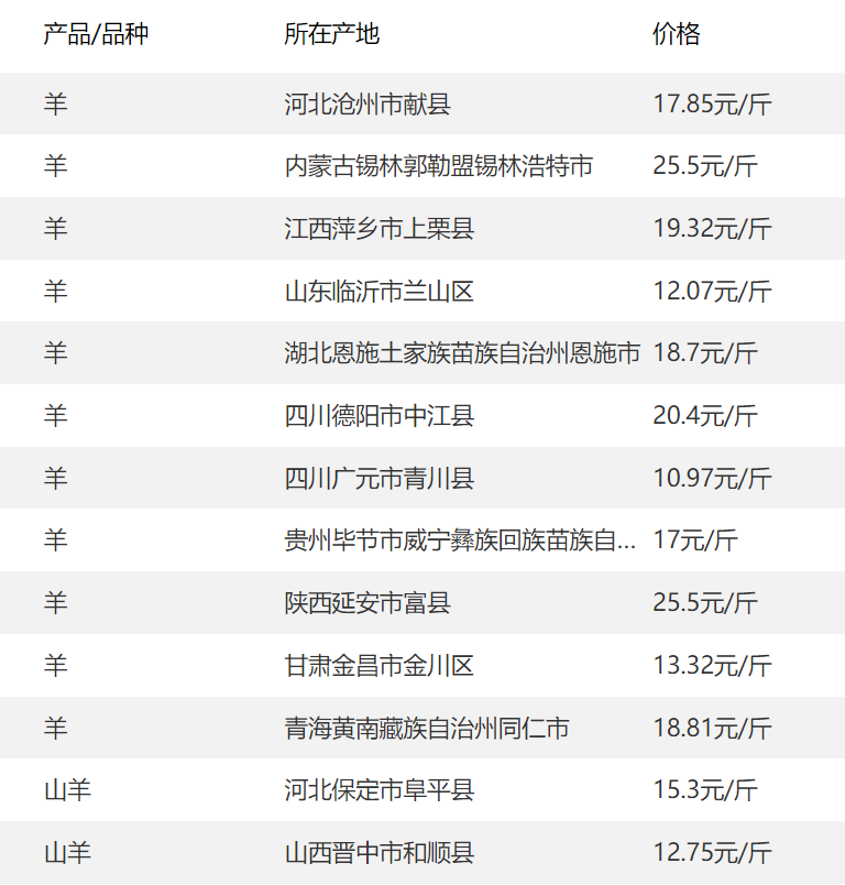 主产区(山东、河南、河北)活羊出栏价26.8~27.5元/公斤,环比节前涨0.4~0.6元,结束连续12周阴跌;内蒙古锡盟羔羊收购价28.0元/公斤,周涨0.8元,为4个月来高点。