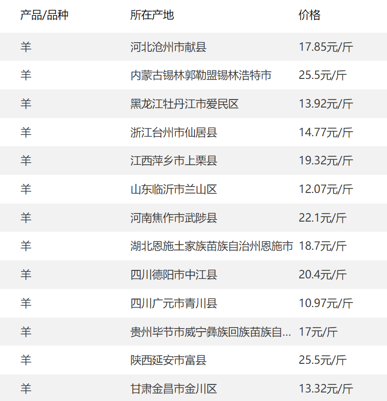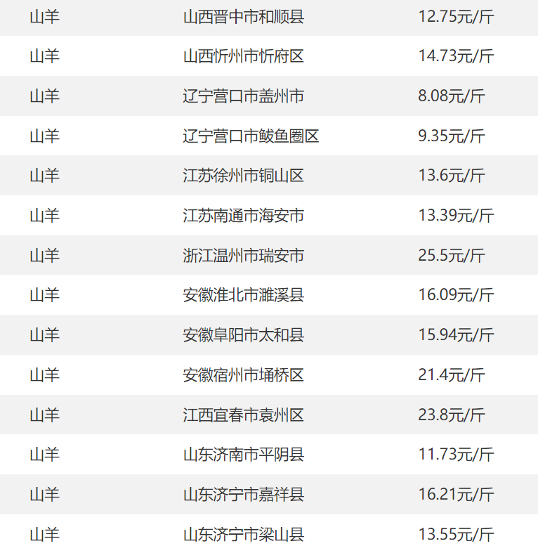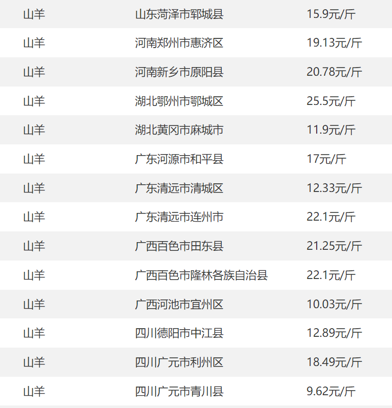 主产区(山东、河南、河北)活羊出栏价26.8~27.5元/公斤,环比节前涨0.4~0.6元,结束连续12周阴跌;内蒙古锡盟羔羊收购价28.0元/公斤,周涨0.8元,为4个月来高点。