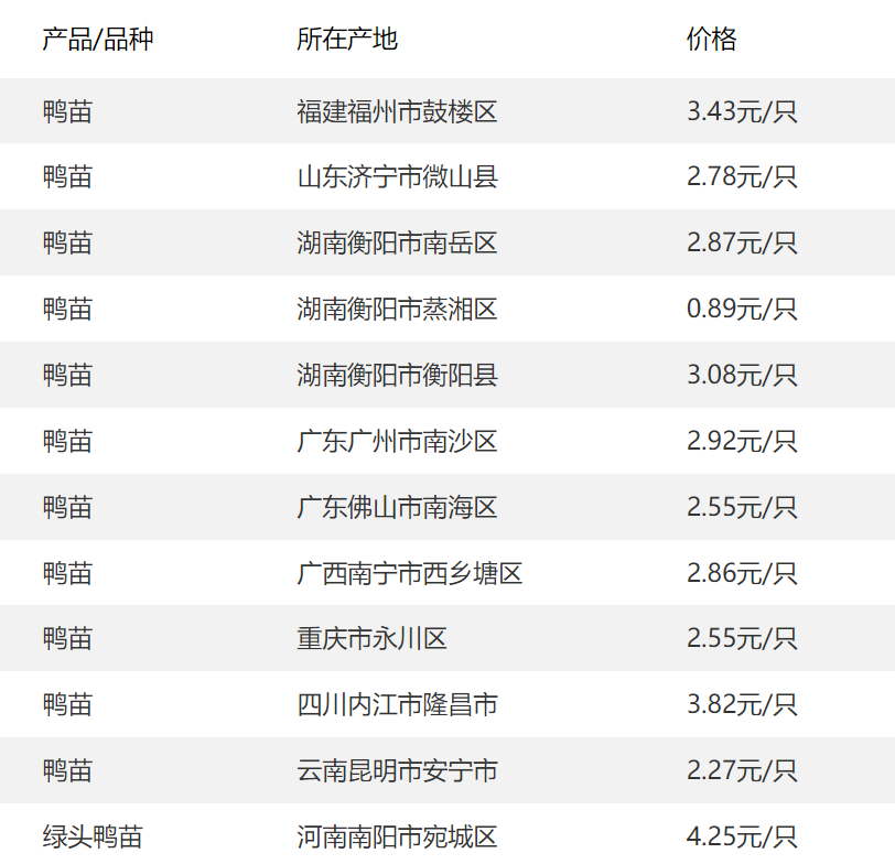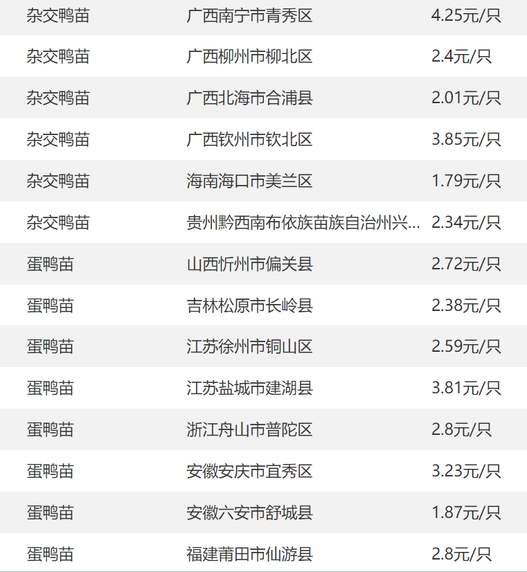 鸭苗:今日报价下跌 。节日期间市场窄幅波动,预计近期鸭苗价格呈震荡调整趋势 。